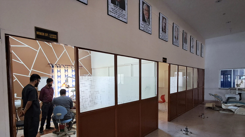 The department of Periodontics is situated on the Third floor of the college housed in a massive construction measuring more than 13,100 sq.ft. The department has separate U.G Clinic, P.G Clinic, Seminar hall, Sterilization room, patient waiting area, chambers for teaching staffs and so on. The department has Professors, Readers, Sr. Lecturers and other staffs as per N.D.C norms.